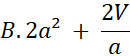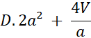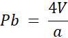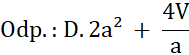 Jeśli w graniastosłupie podstawa ma 4 kąty, a każda krawędzi wynosi a, natomiast objętość wynosi V, to pole wygląda następująco:
