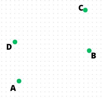 2. Teraz chcemy wyznaczyć punkt D w taki sposób, aby czworokąt ABCD był równoległobokiem. W równoległoboku przeciwległe boki są równoległe i równe sobie.