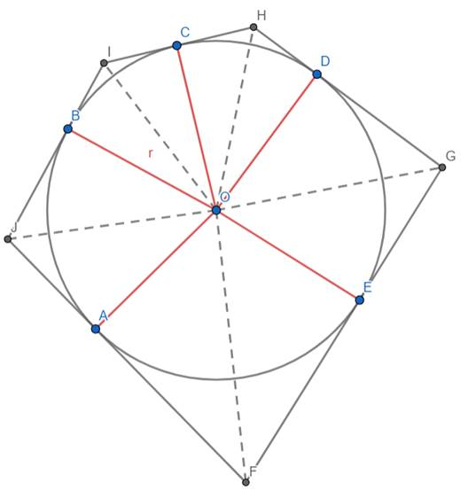 Rozwiąż to dla 5-kąta (analogiczne rozumowanie dla wielokąta o większych bokach). Zauważ, że pole tego 5-kąta składa się z sumy trójkątów prostokątnych: