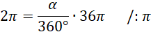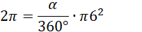 W tym zadaniu musisz obliczyć miarę kąta α wyznaczającego wycinek kołowy o polu 2π, jeśli promień koła wynosi 6.