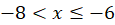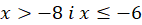 Zauważ, że x jest większe od -8 i mniejsze lub równe -6.