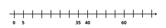 Stwórz oś liczbową i zaznacz na niej liczby: 5, 35, 40, 60.