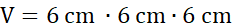 Objętość sześcianu o krawędzi 6 cm wynosi 216 cm3