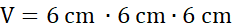 Objętość sześcianu o krawędzi 6 cm wynosi 216 cm3