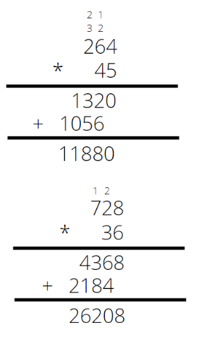 Wszystkie liczby przemnóż przez rząd jedności czynnika. Zacznij od prawej strony. W wyniku zapisz tylko rząd jedności. Rząd dziesiątek zapisz na górze i dodaj do kolejnego iloczynu. Skrajny lewy wynik zapisujemy w całości pod działaniem. Następnie, przesuwając o jedno pole, wymnóż rząd dziesiątek przez liczbę. Po obliczeniu dodaj oba wyniki. Aby ułatwić sobie obliczenia, nie wpisuj zer do sposobu pisemnego. Liczbę nieuwzględnionych zer dopisz już do wyniku końcowego.