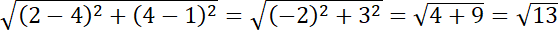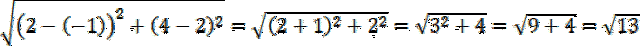 W celu obliczenia odległości między punktami A(xa,ya) i B(xb, yb) skorzystaj z następującego wzoru: |AB| =