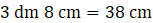 W tym zadaniu musisz zamienić długości 5 dm, 2 m, 34 m, 3 dm 8 cm na centymetry.