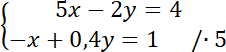Zauważ, że całe drugie równanie należy pomnożyć przez 5, aby współczynniki były przeciwne. Następnie dodaj do siebie stronami oba równania znajdujące się w układzie.