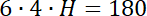 Ze wzoru na pole boczne graniastosłupa – pole 6 prostokątów o wymiarach 4 na H wyznacz długość wysokości graniastosłupa, a następnie jego objętość.