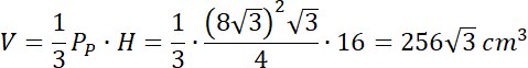 Wyznacz objętość ostrosłupa prawidłowego trójkątnego, którego wysokość jest równa 16 cm i tworzy z krawędzią boczną kąt