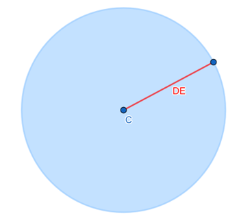 Igłę cyrkla wbij w punkt C, drugą nóżkę rozszerz na taką długość, jaką ma mieć promień okręgu. Aby uzyskać koło, pokoloruj powstały okrąg. Połącz punkt A z punktem krańcowym koła – w ten sposób uzyskasz promień DE koła.