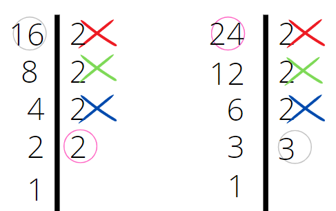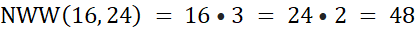Za pomocą metody z przykładu 5, znajdź najmniejszą wspólną wielokrotność 16 i 24.