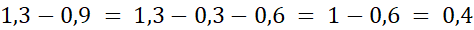 Oblicz 1,3 - 0,9.