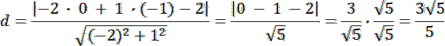 Mając współrzędne punktu A(0, –1), należącego do pierwszej prostej możemy wyznaczyć jego odległość od drugiej prostej, jednak najpierw musimy przekształcić ją do postaci ogólnej.