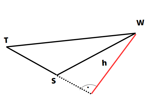 Na końcu odcinka h zaznacz punkt O. Skoro odcinek h jest wysokością padającą na bok PR, to jest on do niego prostopadły. Mając narysowaną wysokość z prostopadłą do niej podstawą, wystarczy zamknąć trójkąt i podpisać wierzchołki.