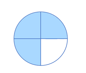Figura składa się z 4 części. 4 ∙ 75% = 4 ∙ 0,75 = 3. Zamaluj 3 części.