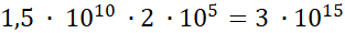 Pamiętaj, w jaki sposób liczy się działania z potęgami – mnożąc potęgi o tej samej podstawie, dodajesz do siebie ich wykładniki. Nie musisz mnożyć przez np. 1010 liczby obok niej, wystarczy pozostawienie działania w postaci notacji wykładniczej.