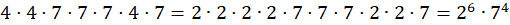 Potęgowanie zastępuje mnożenie przez siebie tych samych czynników. Zauważ, że liczba 4 nie jest liczbą pierwszą.