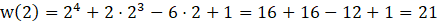 Odpowiedź: w(0) = 1, w(2) = 21, w(-2) = 13