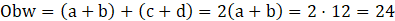 Policz powierzchnię trapezu o ramionach 5 cm i 7 cm, który opisano na okręgu o promieniu 2 cm i zsumuj długości jego boków.