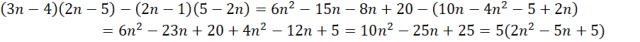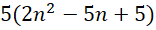 Wymnóż sumy algebraiczne, czyli pomnóż każdy wyraz znajdujący się w jednym nawiasie przez każdy wyraz z drugiego nawiasu, w iloczynie dwóch nawiasów, a następnie zredukuj wyrazy podobne, czyli dodaj/odejmij jednomiany podobne. Na koniec wyłącz liczbę 5 przed nawias w powstałym wyrażeniu.