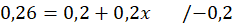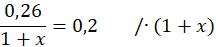 Zauważ, że po podzieleniu ilości nektaru znajdującego się w 1 litrze, przez ilość litrów soku po dolaniu do niego wody, otrzymasz 0,2 litra nektaru. Zapisz to za pomocą równania.
