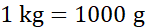 Liczba gramów w kilogramie będzie w mianowniku, a podana liczba gramów w liczniku.