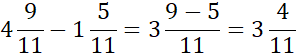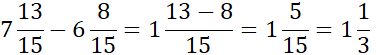 Jeśli ułamki mają wspólne mianowniki, to możesz odjąć licznik odjemnika od licznika odjemnej. Mianownik pozostaje ten sam. W przypadku liczby mieszanej odejmij całości odjemnika od całości odjemnej.