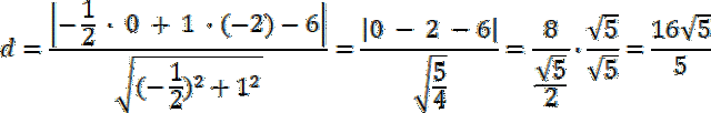 Mając współrzędne punktu A(0, –2), należącego do pierwszej prostej możemy wyznaczyć jego odległość od drugiej prostej, jednak najpierw musimy przekształcić ją do postaci ogólnej.
