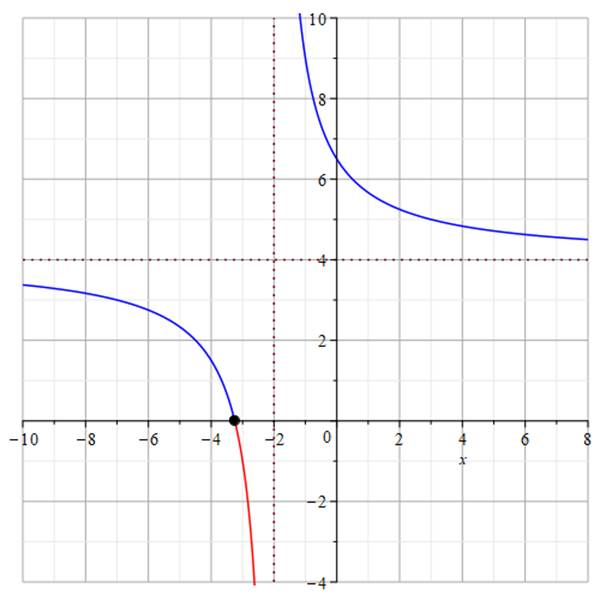 Wartości dodatnie to te, które są nad osią OX. Natomiast wartości ujemne to te, które są pod osią OX. W celu określenia odpowiedniego zbioru argumentów, oblicz punkt przecięcia wykresu funkcji z osią OX: