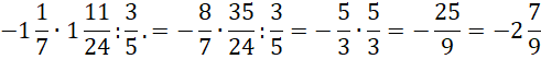 Każdy z podanych ułamków zapisz w postaci niewłaściwej. Dzielenie ułamków zwykłych możesz zamienić na mnożenie przez odwrotność drugiego. Następnie skróć na skos i oblicz wynik powstałego iloczynu.