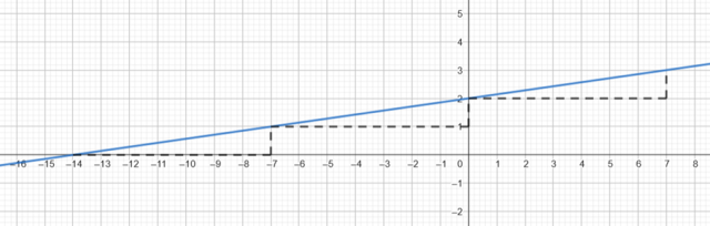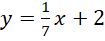 zauważ, że przecina ona oś OY w punkcie (0,2), a wzrost argumentu o siedem jednostek odpowiada wzrostowi funkcji o jedną jednostkę i przedstaw to w układzie współrzędnych.