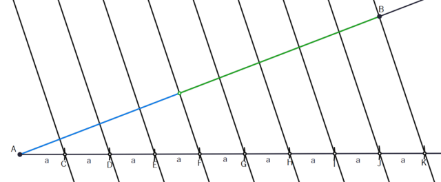 W ten sposób podzielono odcinek AB na 9 równych części.