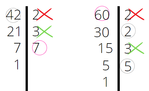 Za pomocą metody z przykładu 5, znajdź najmniejszą wspólną wielokrotność 42 i 60.