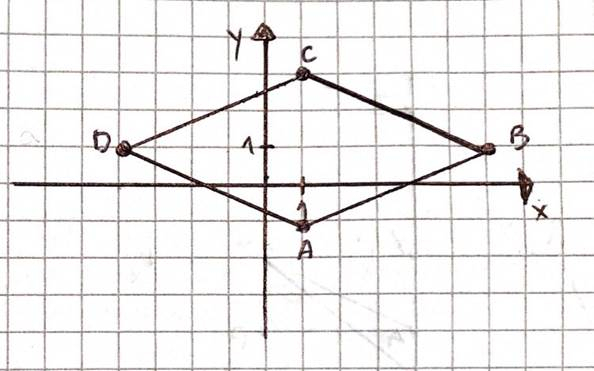 Zaznacz punkty A = (1, -1), B = (6, 1), C = (1, 3), D = (-4, 1) w układzie współrzędnych i oblicz obwód powstałej figury.