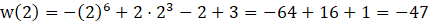 Odpowiedź: w(0) = 3, w(2) = -47, w(-2) = -75