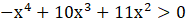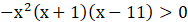 Najpierw szukamy miejsc zerowych wielomianu. Współczynnik przy najwyższej (parzystej), potędze jest ujemny, więc wykres zaczynamy rysować z lewej dolnej części układu współrzędnych. Odbija się on w punktach będącymi miejscami zerowymi o parzystych krotnościach, a w pozostałych przecina oś. Opisujemy przedział, który znajduje się nad osią OX, nie uwzględniając miejsc zerowych.