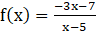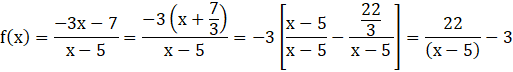 Najpierw doprowadzamy funkcję f do postaci kanonicznej, aby odczytać O jaki wektor została przekształcona. Asymptotami funkcji f są proste y = -3 oraz x = 5. Ponieważ współczynnik we wzorze funkcji jest dodatni, to funkcja homograficzna jest malejąca w przedziale