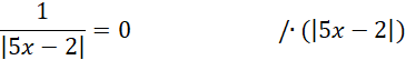 Zapisz dziedzinę wyrażenia. Zauważ, że mianownik nie może być równy zero. Opuść wartość bezwzględną. Ze względu na to, że zero nie jest ani liczbą dodatnią ani ujemną to równanie będzie posiadać jedno rozwiązanie