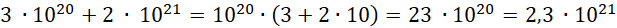 W tym przykładzie wyłącz 1020 przed nawias. Pamiętaj, w jaki sposób liczy się działania z potęgą 10. Nie musisz mnożyć przez np. 1010 liczby obok niej, wystarczy pozostawienie działania w postaci notacji wykładniczej.