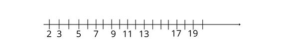 Na osi liczbowej zaznacz wszystkie liczby pierwsze mniejsze od 20.