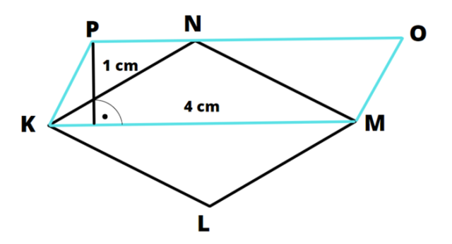 Równoległobok KMOP ma takie samo pole. Zauważ, że bok KM ma 4 cm, dlatego wysokość opuszczona na ten bok musi mieć 1 cm, by wartość pola się zgadzała.