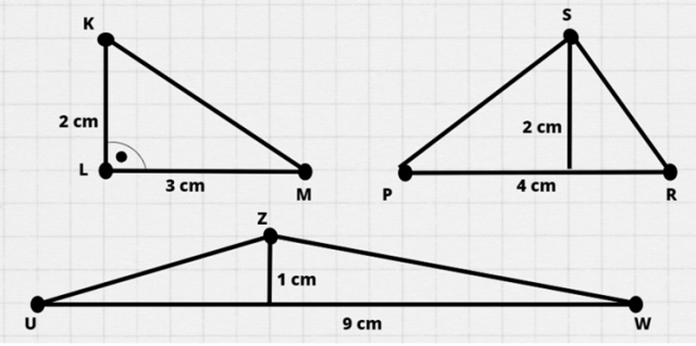 Możesz narysować dowolny typ trójkąta; ważne, aby zgadzały się pola. Musisz tak dobrać długość podstawy i wysokości, by pole było równe wskazaną ilość.