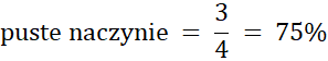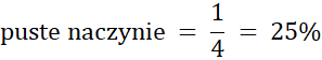 W tym ćwiczeniu musisz policzyć, jaką część naczynia zajmuje woda, a jaka jest pusta. Aby zamienić ułamki zwykłe na procenty, sprowadź mianownik ułamka do 100.