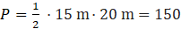 Zauważ, że podstawa trójkąta ma 15 m, ponieważ 30 m – 15 m = 15 m (spójrz na górny dłuższy bok prostokąta i jego podział)