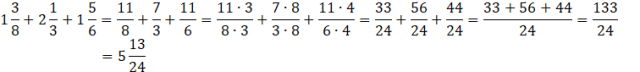 W tym działaniu wspólnym mianownikiem dla liczb 8, 3 i 6 jest liczba 24.
