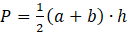 , gdzie a, b oznaczają podstawy trapezu, h oznacza wysokość trapezu.