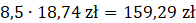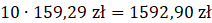 Żeby obliczyć cenę opakowania, pomnóż jego masę przez cenę cukierków za kilogram. Uzyskany wynik pomnóż przez liczbę opakowań.