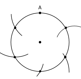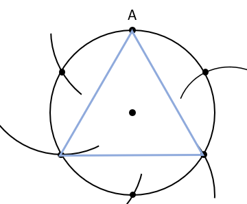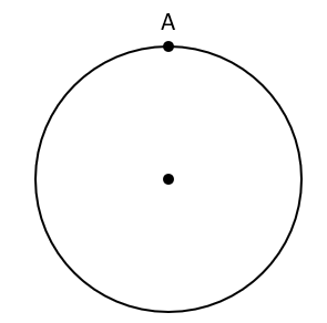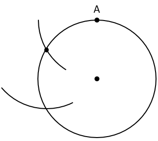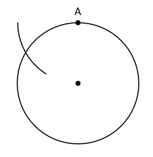 Nie zmieniając rozwartości cyrkla, wbij go w punkt A i zakreśl łuk po lewej stronie punktu tak, by przeciął on okrąg.