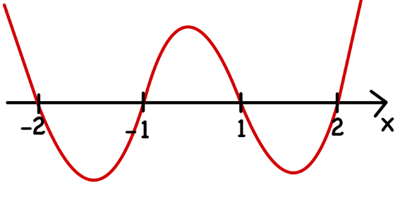 Lewą stronę nierówności rozłóż na czynniki za pomocą wzoru skróconego mnożenia na różnicę kwadratów. Następnie, z wielomianu w postaci iloczynowej odczytaj jego pierwiastki, na których podstawie naszkicuj wykres. Z wykresu odczytaj rozwiązania nierówności.